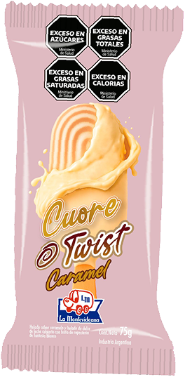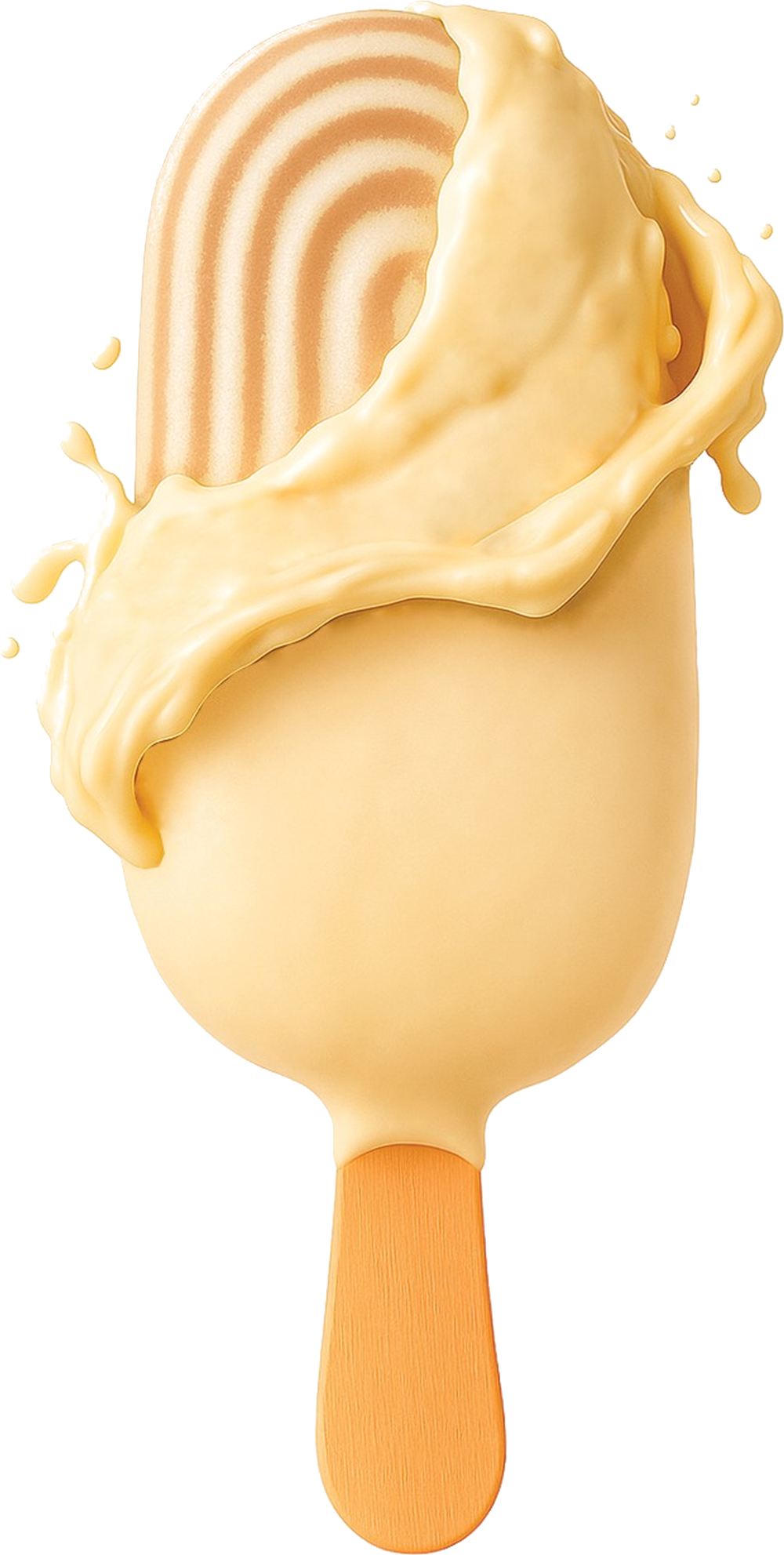Helado de caramelo y dulce de leche con baño de chocolate blanco.