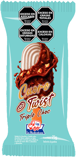 Helado de chocolate y americana relleno de dulce de leche, con baño de chocolate y crocante de maní.
