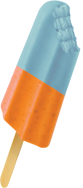 Helado de chocolate relleno con dulce de leche, con baño de chocolate blanco.