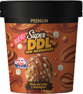 Helado de chocolate con dulce de leche y chips de chocolate blanco.